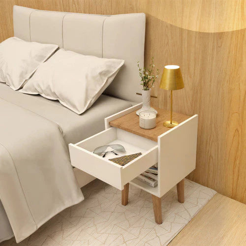 Seja bem-vindo(a) à Byhouse! Produto - Mesinha de Cabeceira Retro Luxo A mesa de cabeceira com 4 pés de madeira, 1 prateleira, 1 gaveta e divisória para acessórios da Byhouse é a escolha perfeita para quem busca um ambiente organizado com muito estilo. Com um design moderno e funcional, ela oferece amplo espaço para seus itens pessoais, incluindo uma gaveta para itens mais discretos, uma prateleira para objetos decorativos e uma divisória no topo para manter seus acessórios sempre à mão, como celular, carregador e mais. Características e Especificações Produto: Mesa de Cabeceira com 4 Pés de Madeira, 1 Prateleira, 1 Gaveta e Divisória para Acessórios Cor: Branco (estrutura) com prateleira em tom marrom Material: MDP Dimensões: Altura: 50 cm Largura: 30 cm Comprimento: 32 cm Gaveta e Divisória: A mesa conta com uma gaveta prática, ideal para guardar objetos mais pessoais e pequenos, enquanto a divisória no topo organiza seus acessórios, como celular, carregador e outros itens essenciais, mantendo tudo em seu devido lugar. Com um design clean, elegante e funcional, a mesa de cabeceira Byhouse é perfeita para quem deseja um toque de sofisticação e praticidade no quarto.